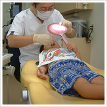 | 1才から12才までの子供さんを対象とし、乳歯の虫歯、歯ぐきの炎症予防、歯並びの経過観察・治療を行います。乳歯を健全に保つ事は、永久歯の健全な成長、スムーズな歯並びの形成へとつながります。歯科衛生士によるブラッシング指導、フッ素塗布、食生活へのアドバイスも治療と併せて実施しています。歯や歯ぐきの炎症のリスクの高い子供さんには、1〜2ヶ月に一度のPMTCをお勧めしております。PMTCは大人だけでなく、子供さんにも非常に有効です。 | ![]() |