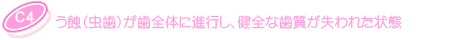 | 冷たいもの、熱いものが強くしみる、自発痛(ズキズキとした痛み)、咬み合わせると痛みが発現する。 | |